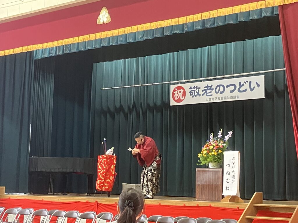 9月27日、土合小体育館で「社協敬老の集い」が開催されました。地域の高齢者300人ほどが参加、土合小の金管バンドや紙切の「つねむね」のアトラクションに、盛んに拍手が送られていました。