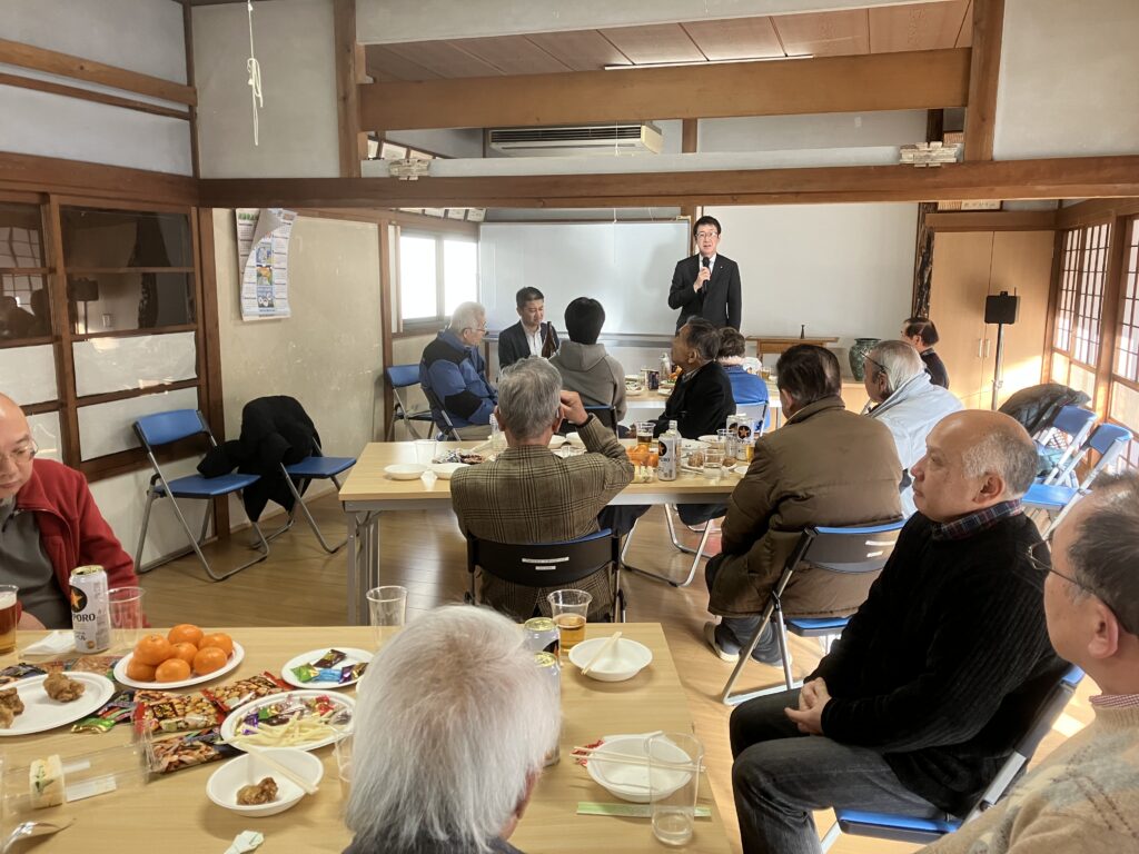 1月11日午後、門前自治会の新年会を自治会館で開催しました。議員さんも含め30名ほどの皆さんが参加し、親睦を深めました。